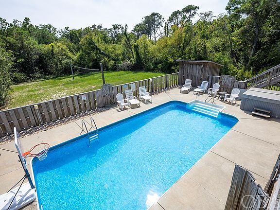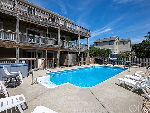 LOCATION, LOCATION, LOCATION! Updated with Beach access directly down Bismark Drive! This spacious and updated 8 bedroom home is located in the private community of Ocean Hill in Corolla, just down the street from the 4x4 beaches where the wild horses roam and historic Corolla Village where you’ll find quaint shopping, the Currituck Lighthouse and Whalehead Club and park! With ample parking and all the top amenities---private heated pool and hot tub, elevator, game room and more--- this home is a comfortable beach getaway that also provides a GREAT INVESTMENT (143K in 2022 rental income) opportunity just steps from the beach. The nearby beach access just 8 houses down is a dream, with no steep steps leading you to the wide open beaches of Corolla! The reverse floor plan with the living, dining, and well-equipped kitchen on the top level boasts new furniture and is large enough for everyone to gather and offers great views outside from the wrap around decks. The home is tastefully decorated, all 8 bedrooms are masters with a private bath, and most have direct access to one of the many decks. Enjoy lots of great upgrades in recent years including new appliances, new interior paint, new decorative lighting, new heat pumps, new outdoor furniture, new TV’s, new carpet, new bedding and window treatments and a lot of new furniture throughout. If rented the full year, income potential is over $162K annually!