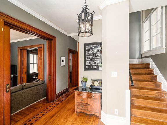 Elegant, French inspired, Chateauesque design on historic Bryden Road. Built in 1892 of brick & stone, this was the home of renowned architect Joseph Yost. It features a columned front porch with 2nd floor balcony, 2 sets of triple bay windows are accented by carved limestone & crowned by an ornate 3rd floor dormer. The foyer sets the stage with high ceilings, gorgeous inlaid hdwd flooring & dbl pockets doors leading into a gracious living room w/ decorative fplc. A 2nd set of pocket doors open into the dining room that flows into a newly remodeled custom designed kitchen. It features white cabinetry, granite counters & high end SS appliances. 2nd flr has Owner's suite w/ luxury bath & WIC + 3 more BRs & full ba., 3rd floor rec room, 3 car gar & so much more! Showings begin Sat. Sept 4th