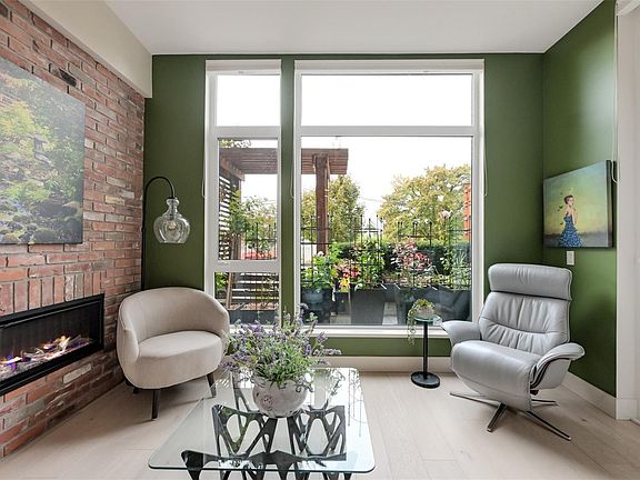 This spacious walk up luxury condo lives more like a single level townhome. Ideally located at Esquimalt Town Square, a masterplanned community built by Aragon; the quality in craftsmanship, design and materials are evident throughout the home, building and community. This 2 bed, 2 bath south facing garden home has every amenity at your doorstep. Over height 9'9'' ceilings and expansive picture windows flood this elegant corner home with natural light. A tranquil, tucked away patio provides privacy, easy indoor / outdoor living and walk-out access - a beautiful spot to host and a pet owners dream. The large living / dining area boasts a reclaimed brick feature wall with a fireplace and enough space to host a full sized dining table. Other features include engineered oak flooring, luxury appliances, heated bathroom flooring, custom window coverings, storage locker & secure underground parking with dedicated EV charger - this is a must-see. It’s more than a condo - it’s a lifestyle.