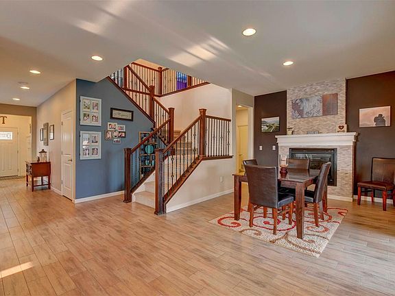 Gorgeous 4 bedroom home in prime cul-de-sac location in Vista Ridge. Great views!! Open floor plan with main-floor office, large kitchen with oversized island, hearth/kitchen nook with gas fireplace with custom mantle and tile work, mudroom with custom "lockers", bonus room for second office or playroom. The large backyard includes stamped concrete patio, in-ground trampoline and playset, mountain views. Upstairs you will find 4 large bedrooms and 3 full baths, plus laundry room. The master suite provides his/her walk-in closets, upgraded cabinets, tile and countertops. Too many upgrades to list- quartz countertops, double oven, gas cooktop, under mount cabinet lighting, custom light fixtures, iron railing, tile flooring, soft close drawers and cabinets, dual zone HVAC, radon mitigation. and much more! Basement is over 1600 sqft with 9' ceilings and rough-in for future expansion, &has professionally installed carpet with upgraded pad. This house is one of a kind - come see it today!