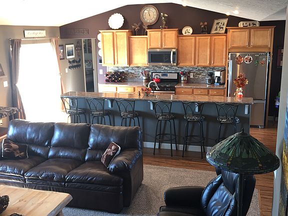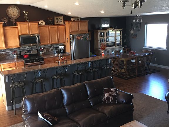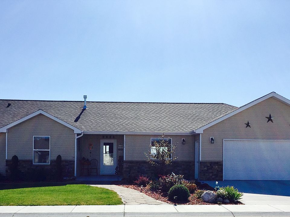 Accepting offers, please call for an appointment to see this immaculate, one owner, turn key entertainers dream home! Over $25k in upgrade expenses since purchase in 2014. Plenty of room for all family and friends to come for dinner in the open concept dining room, kitchen and family room or the barbecue in the beautiful backyard. The home has been tastefully done with a neutral pallet and rich accent walls. All lighting, inside and out, is equipped with energy saving LED fixtures. Flooring in entryway, kitchen, dining and office area is hardwood laminate. Family room and bedrooms have high quality neutral carpeting. Both bathrooms have vinyl flooring. The home is handicap friendly with wide doorways, hallways and a walk in shower in the master bath. The master suite is located on the west end of the home and boasts a huge walk in closet with loads of storage shelves and plenty of room to hang all of your clothing. The kitchen has matching stainless steel appliances and a gas range for the gourmet cook. The cabinets are higher quality solid wood cabinets with soft close drawers and tall wall cabinets for added storage capacity. The tile backsplash adds a complimenting finishing touch. The counter space offers the culinary expert more than adequate area to showcase their masterpieces. Dining area easily accommodates an 8 place dining table and the breakfast bar will seat 6 more people. The guest bath has a full size bathtub, toilet and a nice size vanity. The additional two bedrooms located on the east side of the home offer enough distance from the master suite for privacy and both rooms easily fit a queen size bed, one has a walk in closet and the other has a large closet with bi fold doors. The large family room and kitchen area has a vaulted, beautifully textured ceiling with recessed lighting. Natural light is an added bonus in this area, as well! Pleated cellular shades in family room, master suite and other two bedrooms for energy efficiency and privacy. The two car garage has plenty of room for two vehicles as well as your storage needs with a 4' x 16' overhead storage rack. The walls are finished in this garage with sheetrock and pegboard is already hung as well as ladder and tool hooks. Outside you will find that every measure has been taken to insure a virtually maintenance free yard. A drip system has been installed to each and every plant, shrub and tree. A sprinkler system irritates the lawns, both front and back. Landscaping fabric was placed and covered with mulch to minimize weeds. There are too many different perennials planted to list. The roses on the south side of the home grow vigorously and provide bountiful blooms throughout the summer. There is a small area that has been used to plant a few tomato and pepper plants each year. The backyard has a 6 foot vinyl fence with two lockable gates to keep your pets and kiddos safe and sound. There is a nice storage shed for all of your gardening tools and lawn mower. The oversized concrete driveway extends down the side of the home for additional parking for your RV, side by sides, trailer or other vehicles. This home is truly a turn key, one of a kind home.