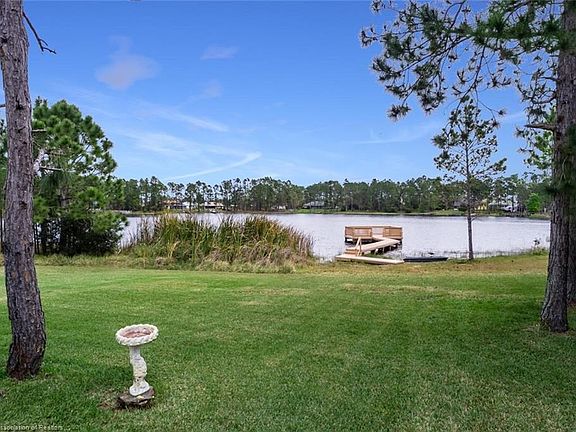 It's love at first sight on this CUSTOM Beavis home! Built in 2007 on a gorgeous LAKE lot, this home offers freshly painted exterior, architectural columns & new concrete landscape curbing. Enter through the leaded glass front door to the tiled foyer with 3 step ceiling, crown molding Hunter light fixtures & large baseboards. The kitchen features wood cabinets, granite counter tops + an 8x12 breakfast nook w/ aquarium window. The master suite boasts tray ceiling, double sink vanities & walk in shower. The large guest room has a huge closet for storage + french doors that lead to the office/den (COULD BE 3RD BEDROOM). Let the outdoors in as you open your triple sliding glass doors leading to the 10x23 screened lanai. Soak in your view of Lake Rachel and the freshly stained private boat dock. Plus, the 2 car garage is extra deep to store your dream boat or outdoor toys!