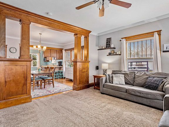 Approaching this beautifully maintained home, you will be delighted to find an amazing front porch with swing and sitting area! Enjoy an open concept design between the living room and kitchen with wood pillars and wide trim separating the living room from the dining room. The kitchen features excellent cabinet space & snack bar area. The main floor of this home is complete w/ a large primary bedroom w/ walk-in closet, 2nd bedroom & full BA! The upper level has tons of space w/ 2 oversized bedrooms w/ walk-in closets & full bathroom! Take in the country feel of this city lot with raised garden beds, a chicken coop area, berry bushes, fenced backyard & patio area! 2 car garage & above loft area for all your storage needs. Showings start 4/8/2022. Offers being presented on 4/12 at 1:00PM.