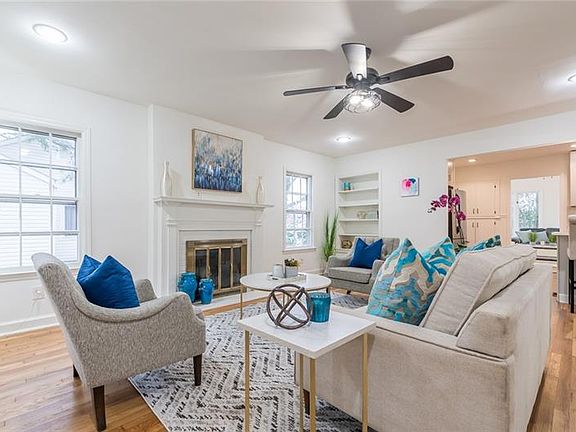 Great cottage living in a this fully updated 3-bed, 2-bath in East Pointâs Jefferson Park. Roof has been recently replaced. Shelving and cabinets abound in the dining room, living room + kitchen â which boasts quartz counters and breakfast bar. Large family room offers a wide view of a huge back yard. Hardwood floors, fresh-painted walls, and updated hardware/light fixtures throughout. Master has an en-suite bath with marble shower. 2 other bedrooms share a hall bath with tub/shower combo. Thereâs a carport and day-light basement too. All 10 minutes from downtown ATL.