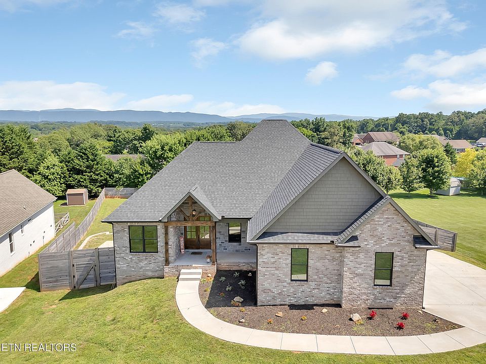 Welcome home to this beautiful 2023 custom built brick basement rancher, where luxury meets comfort in perfect harmony. Located in Greenback, this beautifully designed home showcases an impressive open floor plan and an incredible finished walk out basement. Step into the great room, where a cathedral ceiling and stone gas fireplace create a dramatic focal point, setting the stage for memorable gatherings. The open floor plan allow the great room, kitchen, and dining areas to seamlessly connects creating an ideal space for both relaxing and entertaining. The chef's kitchen is a culinary masterpiece, featuring high-end appliances (check out that oven and gas cooktop), a spacious island, and a pantry. The breakfast room offers mountain views, making each morning meal a delightful experience. The thoughtfully designed split bedroom plan ensures privacy and comfort. The primary suite, located on the main level, boasts a sophisticated trey ceiling and an ensuite bathroom complete with dual sinks, a luxurious soaking tub, and a beautifully appointed shower. Generous closet space provides ample storage. Two additional bedrooms and a full bathroom on the main level complete the upper floor's sleeping arrangements. Practical luxury extends throughout the home with beautiful luxury vinyl plank flooring throughout - no carpet to maintain. A convenient mudroom off the garage and a dedicated laundry room add to the home's functionality. The main level's two-car garage provides plenty of parking space, while additional storage solutions ensure a clutter-free living environment. The fully finished walkout basement is an entertainer's dream, featuring high ceilings, built-in cabinets and a dedicated wet bar room perfect for hosting gatherings. A versatile office or exercise room and an additional room currently used as a 4th bedroom offer flexible living spaces. The basement's garage provides extra parking or could serve as additional storage.