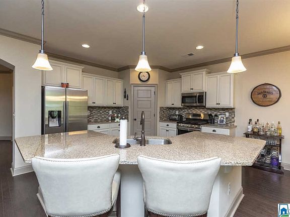 This move-in ready, like new home at only four years old with many very recent upgrades is a rare find with four bedrooms on the main level and an extra large bedroom/bonus room upstairs. Conveniently located to Hwy 280 & 119, walking distance to restaurants and a short drive to Lee Branch.The Kitchen is open to the great room perfect for entertaining with a large granite island, marble back splash, and new stainless steel appliances. Master bedroom has hardwood floors, trey ceiling, spacious closet with custom shelving, and double vanity in the bath. Relax on the new covered deck with a beautiful view of the lake and fountain and fenced in yard. Hardwood flooring, new light fixtures, and crown molding throughout much of the house. Some of the recent upgrades include expanding and finishing upstairs room and bedroom, stainless steel appliances, lighting fixtures, covered deck, hardwood flooring, and vanity. Homes like these don't come on the market often! Schedule your showing today!