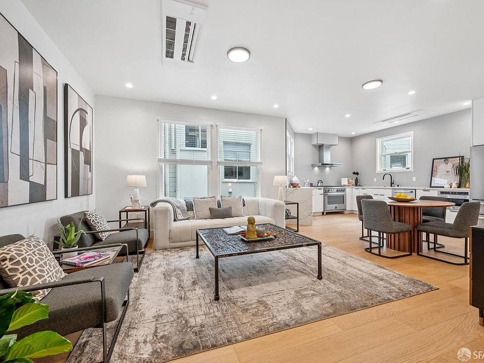 Located on a historic stretch of Jackson Street in Nob Hill, this 3-bedroom, 2-bath flat combines crisp modern design with intuitive functionality. With a private entrance and a flexible layout, the home is tailored to modern living. At the heart of the home is an expansive living, dining, and kitchen area that flows seamlessly from one space to the next. Wide-plank oak floors, recessed lighting, and oversized windows create a warm, airy feel. The renovated kitchen is sleek and functional, outfitted with Bertazzoni appliances, quartz countertops, and custom cabinetry. The south-facing primary suite features a bay window and an en suite bath with clean-lined finishes. Two additional bedrooms offer flexibility for guests or a home office, and a second full bath is just down the hall. Extensive renovations include new systems, CAT 6 wiring, and new double-pane windows. Additional highlights include in-unit laundry, split heating and cooling, ample closet space, and an exclusive use storage room. Enjoy the best of Nob Hill just outside your doorfrom morning walks at Huntington Park to coffee at Saint Frank and dinner at Friends Only. Hyde and Polk Streets offer top dining and local shops, and cable cars are nearby for easy access to Downtown and the waterfront. 90 Walk Score