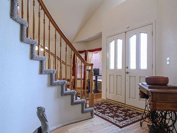 This 3,000 squarefeet home (including the permitted garage conversion) sits on a huge cul-de-sac lot! Beautiful green front yard. Double door entry which opens up to a gorgeous curved staircase. The entry has oak plank flooring and the spacious dining room shares towering vaulted ceilings along with it. The kitchen has an abundance of storage and counterspace with granite countertops, island/breakfast bar and large dual basin sink. The living room has plenty of space, tall ceilings and a stone wood burning fireplace. The garage has been converted to an additional large living space with with a wash station. There are 3 Bedrooms, an office downstairs and 2 and a half bathrooms. The large master bedroom suite features vaulted ceilings and a walk-in closet. Master bathroom has a dual sink vanity and large walk-in shower. Utility room with lots of room for storage. Storage shed. Half basketball court! Rear covered patio. Backyard lawn and trees! Come take a look!