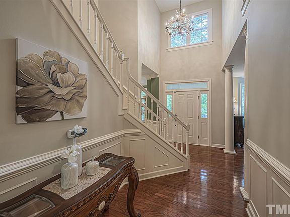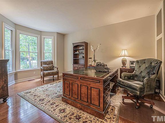 Stunning home on almost 2 wooded acres provides privacy and sanctuary for nature loving buyers. Plenty of unique and thoughtful upgrades abound inside and out - FIRST FLOOR MASTER with over-sized bathroom, FIRST FLOOR OFFICE, RENOVATED kitchen with granite, GAS range and island. HARDWOODS, 2 STORY LR, overlook balcony. Smooth Ceilings throughout. SIDE LOAD garage and DETACHED carport with additional storage. New ROOF (2019). Great location- close to Brier Creek, RTP, RDU and Durham!