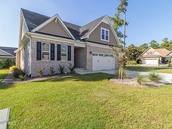 Located in The Gardens Section of Palmetto Creek, this beautiful brick home is ready for you to enjoy today! Inside this nearly 2600 sq. ft. home you will find a large open kitchen and living area. The living area offers a cozy gas fireplace with granite surround. The kitchen features timeless white cabinets, a large center island with quartz countertops, stainless steel appliances and tile backsplash. The formal dining room located just off of the living area, is perfect for entertaining. Enjoy year around living on the rear porch with Eze-Breeze enclosure. The first floor owner's suite offers a large walk-in tile shower, double vanities, private water closet and a large walk-in closet with wood shelving. A second bedroom with full bath and laundry room complete the first floor of this home. Tucked away for privacy upstairs is a large bonus room and flex space, along with the 3rd bedroom and full bathroom. Additional features include laminate floors throughout 1st floor living areas, wood stair treads and sodded and irrigated yard. You are just a short drive to the beaches of Oak Island and Holden Beach. Just out your backdoor, you can enjoy all of the amenities that Palmetto Creek has to offer - clubhouse with resort-style pool, fitness center, trails, tennis courts, putting green, along with a kayak and canoe launch to peruse the ponds and lakes. Don't miss out on this opportunity to own a new home in Palmetto Creek. Located 30 minutes from Wilmington, NC, 30 minutes from North Myrtle Beach, SC & 15 minutes from the beaches of Oak Island or Holden Beach.