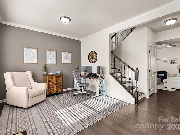 Welcome to this beautifully maintained home, perfectly situated in a boutique-sized community just minutes from shopping, dining, & I-485. Designed for both comfort & style, this open-concept floor plan features spacious rooms & wonderful finishes. Main flr showcases 5" wide hwd, elegant hwd stairs w/iron spindles, & a thoughtfully designed layout that seamlessly blends function & elegance. A lrg kitchen boasts white cabinetry, granite, ss appliances, pantry, & a lrg center island—ideal for entertaining. The sunroom/dining area is bathed in natural light & provides a stunning view of the fenced-in backyard, complete w/an extended patio, privacy wall, & lush, usable green space—perfect for relaxing outdoors. Upstairs, you'll find the 3 spacious BR's plus a versatile BONUS rm (or a fourth BR- complete w/Murphy Bed), offering endless possibilities for a home office, playroom, or guest suite. With its prime location, exceptional features, & fantastic outdoor space, this home is a must-see!