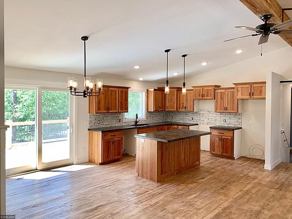 This brand new home 3BR, 2BA home is set on 2.5 beautiful wooded acres just West of Pequot Lakes. Quality finishes include custom cabinets, concrete countertops, solid wood floors, huge mudroom with stained concrete floor, sturdy wood accents, LP lap siding, private and full master bath with his and hers sinks, 3 bedrooms on one level, an unfinished walk-out full basement plumbed for a third bath, big boulder landscaping and an oversized two car garage.