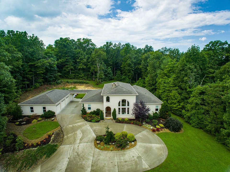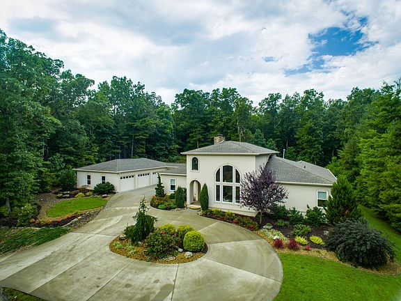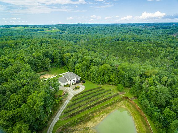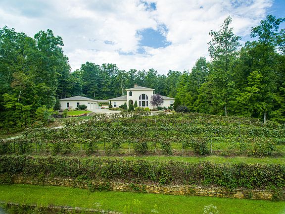 Mediterranean style home on 13.5 acres with over 700 feet on Daddy's Creek! A private drive leads you past your own private pond and very own vineyard of Niagara, Catawba, & Concord grapes to the professionally landscaped 3,145 square foot 3 bedroom, 2 1/2 bath showplace. This Jeff Freitag custom built home boasts exceptional quality throughout sure to impress even the most discerning buyer. Some of the many features include wet bar designed from a 1920's piece, banquet style dining serving up to 10 intimately, heated in-door pool with private balcony perfect for your morning coffee. The kitchen features quartz counter-tops with custom designed marble back splash, Chuck Palmer custom cabinets, Kohler sinks and fixtures, Kitchen-aid appliances including a wine fridge, Insinkerator hot