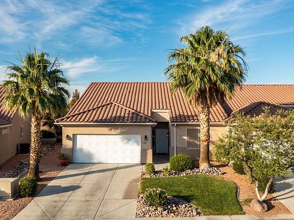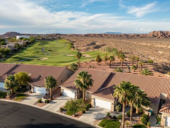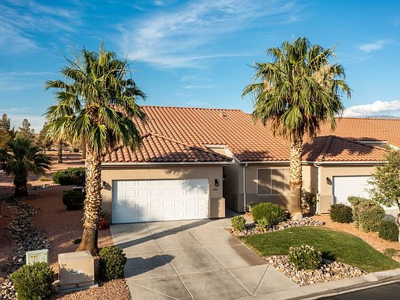 Take a look at 1216 Mohave Drive and you'll quickly discover you've found a little slice of paradise. This end unit townhome sits nicely on the curve of the road, which makes for a larger lot size and sits on the intersection of the Arizona border & the 14th green of the Palmer Golf Course. The backyard, which is maintained by the HOA, is fully landscaped with palm trees & desert landscape. Inside this home you'll find an open concept design w/vaulted ceilings and hard flooring throughout (tile in main areas & gorgeous laminate in the bedrooms). This home offers 2 bedrooms and 2 bathrooms which can be used as dual master suites if desired. Plenty of get-around space in the kitchen, and the laundry room offers it's own sink. Current HOA fees are $181/month and include all landscaping maintenance around the home and common areas as well as access to the Mesquite Vistas Sports Complex. This home is being sold as you see it, so don't miss out!