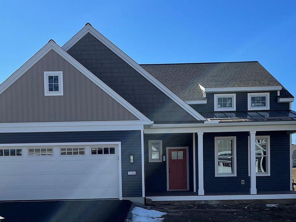The STANFORD B in Alden Place. Stanford's one-floor living offers not only a beautiful owner's suite but two additional comfortable bedrooms. This well-thought-out plan showcases both efficiency and delightful open space. You will love the covered porch beyond the vaulted great room as your own personal retreat. Alden Place is a 55+ Active Adult Community featuring a 17,000 sq. ft. Clubhouse with an indoor pool, hot tub, fitness center, ballroom, library, billiard room, and coffee cafe. Also, the community has a small fishing lake and access to Rails & Trails for walking and biking.
