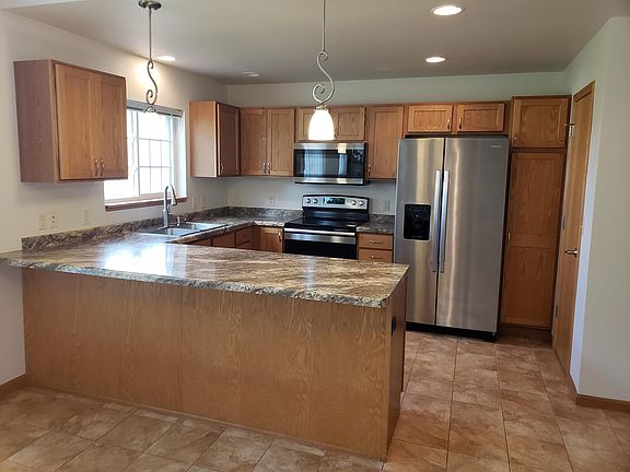 3 Bedroom, 2 1/2 bath, 2 level townhome with a master bedroom on the main level, All bedrooms feature walk-in closets, a full kitchen with lots of storage, Ceramic tile floors through various areas, Gas fireplace, Main floor laundry, Full unfinished basement for storage, concrete patio out the back, and 2 car attached garage. Room Size Level Kitchen 10 x 14 Main Dining 8 x 14 Main 1/2 Bath 4 x 5 Main Living Room 14 x 16 Main Bedroom 1 12 x 14 Main Bedroom 1 Bath. 6 x 11 Main Bedroom 2 13 x 17 Upper Bedroom 3 12 x 14 Upper Upper Bath 5 x 8 Upper Garage 20 x 23 Main Basement 28 x 33 Lower Gas Forced Air heat with central air conditioning, Gas water heater, Gas fireplace, Main floor laundry closet with stacking Washer & Dryer, Hookups for side by side laundry in basement, 2 car garage Appliances: Microwave, Refrigerator, Stove, Dishwasher, Disposal In Sink, Laundry Hookups, Air Conditioning Average Utilities: (Based on 2 Adults & 2 Children) $69 - Electric $61 - Gas - Winter Months $110-120 (quarterly) - Water - Quarterly One year lease. Utilities and snow removal are the tenant's responsibility. Lawn and shrub care are the landlord's responsibility. ** NO PETS ** 3 Bedroom, 2 1/2 bath, 2 level townhome with a master bedroom on the main level, All bedrooms feature walk-in closets, a full kitchen with lots of storage, Ceramic tile floors through various areas, Gas fireplace, Main floor laundry, Full unfinished basement for storage, concrete patio out the back, and 2 car attached garage.