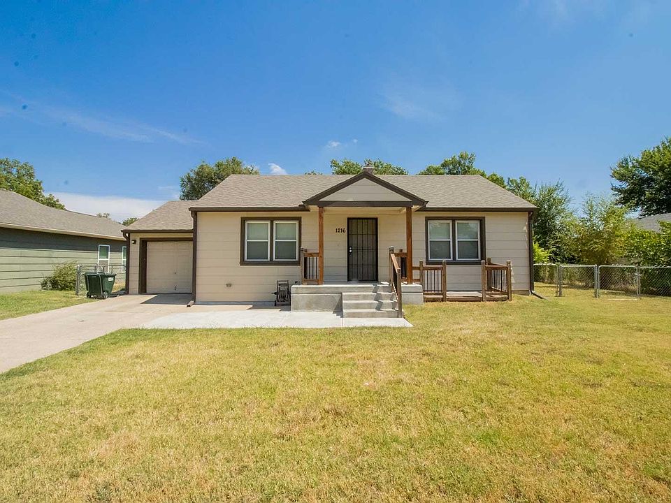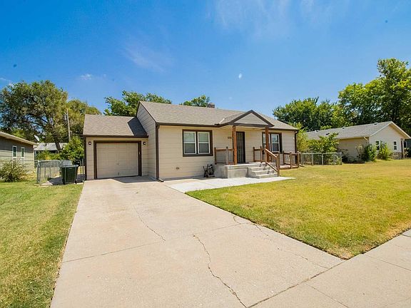 THIS PROPERTY IS BEING OFFERED IN A MULTI-PROPERTY AUCTION VIA LIVE STREAM WITH REAL TIME BIDDING, AUCTION BEGINS AT 5:30 PM ON SEPTEMBER 22ND. ONLINE BIDDING IS AVAILABLE THROUGH SELLER AGENT’S WEBSITE. PROPERTY IS SELLING WITH CLEAR TITLE AT CLOSING AND NO BACK TAXES. PROPERTY PREVIEWS AVAILABLE. This recently updated charming 4-bedroom, 1.5-bathroom home has concrete front and back porches, a fenced-in backyard, and an attached one-car garage.  Step into a cozy living area, with an open flow to the kitchen which features an island with eating space and granite counters. Two bedrooms and a full bathroom complete the main level. The partially finished basement has two more bedrooms, a half bathroom, laundry, and storage.  This home is currently rented month-to-month at $753 per month. Section 8 tenant. Seller is a licensed real estate salesperson in the state of Kansas. *Buyer should verify school assignments as they are subject to change. The real estate is offered at public auction in its present, “as is where is” condition and is accepted by the buyer without any expressed or implied warranties or representations from the seller or seller’s agents. Full auction terms and conditions provided in the Property Information Packet. Total purchase price will include a 10% buyer’s premium ($1,500.00 minimum) added to the final bid. Property available to preview by appointment. Earnest money is due from the high bidder at the auction in the form of cash, check, or immediately available, certified funds in the amount $5,000.