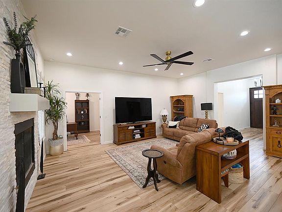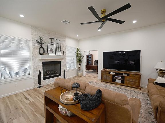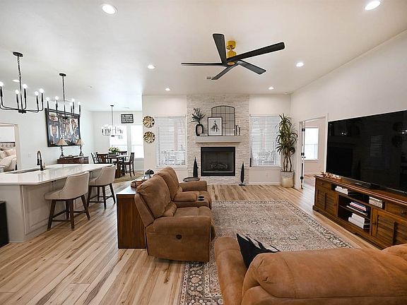 Is it possible to own a home that is “better than new”? YES! Located in the highly desirable Oakdale Park community, this stunning masterpiece is more than just another “pretty house.” The versatile floor plan features an open kitchen, dining and living concept with a split bedroom arrangement. The living room boasts of high ceilings and features a dazzling, white, stone surround gas-insert fireplace, accented with a wood mantle. A chef’s delight, the kitchen includes a massive island with bar stool seating, an inset stainless sink, state-of appliances, including a gas stove with built-in griddle, and a beautiful hood,vented through the roof (per builder-buyer to confirm). Additional kitchen components include a roomy eat-in dining area, granite countertops, tile backsplash, walk-in pantry, and instant hot water pot filler. Adjacent to the kitchen is the large utility room, featuring a built-in folding table and built-in cabinets. The primary suite bedroom includes a tray ceiling with crown molding. The dreamy primary bath boasts of two separate sink areas, soaker tub, gorgeous walk-in tile shower, a huge Australian style wrap-around closet and a plethora of storage! Two of the other bedrooms have roomy closets and are separated by a Jack and Jill bath. The half-bath is in the hallway just off of the entryway close to these bedrooms. The 4th bedroom is perfect for an office, playroom, small media room, or nursery. Moving on to the exterior…the superb curb appeal in the front includes an adorable covered front porch and professional landscaping. Since purchasing the home, the current owners added a sprinkler system and an incredible pergola over the back patio. The pergola is constructed of high-end materials including a metal roof and solid 8 x 8 cedar beams. The concrete patio was extended, a TV mount plus extra electric wiring, outlets and ceiling fans were installed. Thej interior flooring features striking, luxury vinyl plank flooring and plush carpet. Other notables include Instant hot water heater, chic fixtures throughout, loads of both natural and interior electric lights. This property is pristine and ready for a new owner.