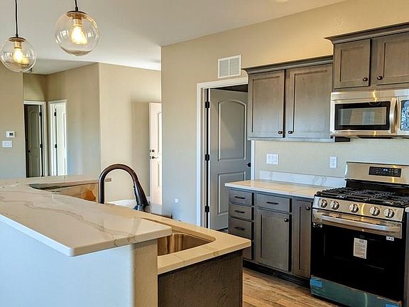 No Updating for YOU... Buy brand NEW! Built by local, custom home builders. The main entry faces an oversized 9 foot, 3-panel, slider which provides that feeling of a grand entrance into this open concept home. The 10' high ceilings and arched entryways gives the split bedroom layout the spacious feel that a home this size deserves. All bedrooms and great room feature ceiling fans included as a standard, not an upgrade. A large QUARTZ island between the kitchen and dining areas features bar height counters on the great room side with lots of custom cabinetry storage underneath. Cabinetry is soft closure with custom hardware. A proper walk-in pantry. Counter tops are premium quality QUARTZ and appliances are all stainless steel. The gas range features center full skillet option! The ensuite bath for the Master includes a floor to ceiling tiled shower, his/hers Quartz vanities and a huge walk-in closet that features a center island. All closets have custom shelving. Laundry room - extra deep, wash basin and more custom cabinetry; access to the garage. Utility room, is in garage, has double doors saves valuable sqft indoors and provides MUCH easier access. Low maintenance & Shade on the large, COVERED and lit, concrete back patio, same as the front entrance covered porch. 3 CAR Garage is insulated, drywalled and includes door openers. Windows are also upgraded to Jeld-Wen Premium vinyl, double pane with Low-E coating. Builder able to make Buyer's choice of select customizations!
