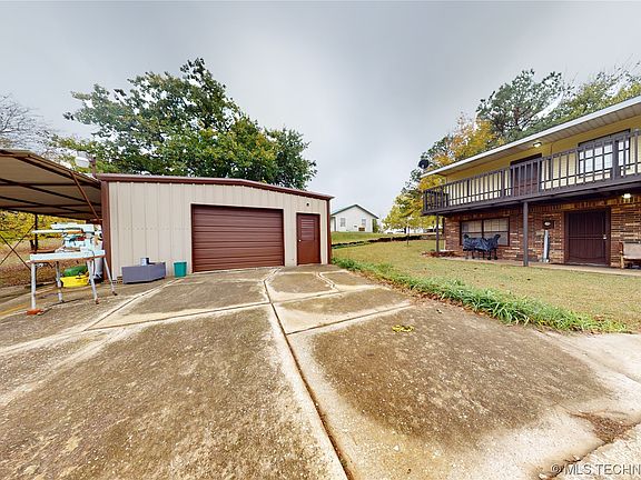 Seller is offering $5,000 to be applied to Buyers closing costs! Spacious 4 bedroom 3 bath home located in Kingston. 2 bedrooms are at ground level and 2 bedrooms are at finished walk-out basement. 1 bedroom does have access to balcony. Located on a well shaded corner lot at North end of Kingston. Easy access for commuters to get on highway, only 10 minutes to Lake Texoma State Park and 7 minutes to Wal-Mart. Plenty of parking available. Circle drive in front and large driveway in back. Property has a large 1-car attached garage, plus additional shop/garage with a carport on the side allowing for boat coverage. You can walk out onto the balcony from the dining area. Great for entertaining and visiting with family and friends. This beautiful and well maintained home has large bedrooms, open kitchen, dining and living areas.