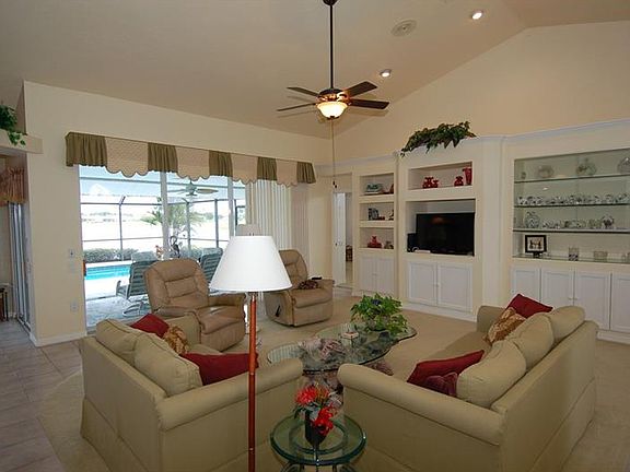 LAKE FRONT POOL HOME IN DEED RESTRICTED DEEP CREEK WITH COUNTY WATER AND SEWER. Immaculate home with lake views, cathedral ceilings and plant shelves throughout features a double door entry leading you to the living room with built-in shelves and sliders to the lanai, kitchen with raised panel cabinetry, desk, pantry, breakfast bar and a dining nook overlooking the pool and lake, master suite boasting 2 walk-in closets, access to the lanai and private bath with dual vanities, tub and separate shower. Two guest bedrooms, one with a built-in desk and the guest bath with door to the pool can be closed off with a door for your guest''s privacy. Sliders across the rear of the home open to the covered lanai with ample room for covered seating and the screened, solar heated pool with overflow spa. Located in deed restricted Deep Creek, conveniently located to I-75, schools, shopping restaurants and all amenities. CALL NOW TO SET UP YOUR PRIVATE SHOWING.
