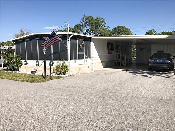 All updated! Open floor plan, brand new A/C and appliances, large storage and workshop, large paved back patio pavers with water view perfect for happy hour! Great North Naples location. This is a 55 and up community. This is a land lease and purchase of the structure, not the land. This is a must see for a low maintenance Florida lifestyle.