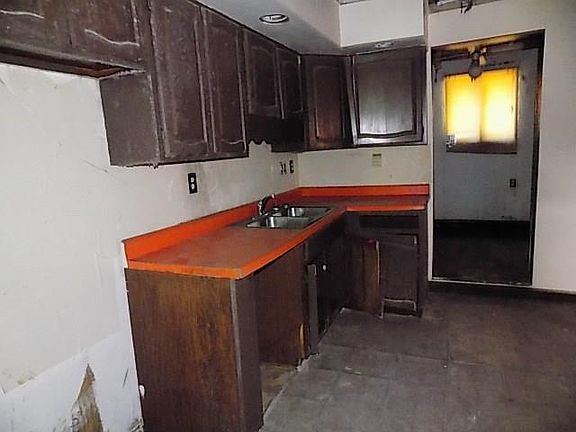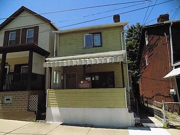 Two story home with a front covered porch. Two bedrooms and one full bathroom. Full, unfinished basement.
