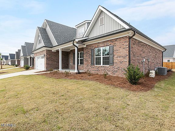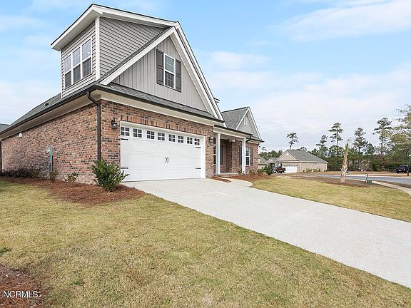 Move-in today into the Poplar Grove, built by American Homesmith in the amenity rich, established neighborhood of Palmetto Creek. This spacious one story plan with bonus room features a brick exterior for easy maintenance. The open concept plan showcases a bright and airy kitchen with timeless white cabinets, center island with farmhouse sink, quartz countertops, tile backsplash, gas range with hood, and pantry tucked away in the mud room. The family room features a shiplap fireplace with gas logs and flows easily into the kitchen and dining area that leads to the covered porch. The owner's suite is located on the back of the house, boasting a trey ceiling, bathroom with double vanities, private water closet, fully tiled walk-in shower with frameless glass door and a generous walk in closet. The first floor is completed by 2 additional guest bedrooms with a full bath, laundry room and a mudroom off of the garage. The 2nd floor rec room is the perfect oasis for guests with a full private bathroom and can easily be used as a 4th bedroom. Additional features include 7.5 in wide plank laminate floors throughout 1st floor living areas, wood stair treads, sodded and irrigated yard and screened in rear porch. Enjoy nearby Oak Island or Holden Beach and all the amenities at Palmetto Creek - clubhouse with resort-style pool, fitness center, trails, tennis courts, putting green, along with a kayak and canoe launch to peruse the ponds and lakes. Don't miss out on this opportunity to own a new home in Palmetto Creek. Located 30 minutes from Wilmington, NC, 30 minutes from North Myrtle Beach, SC & 15 minutes from the beaches of Oak Island.