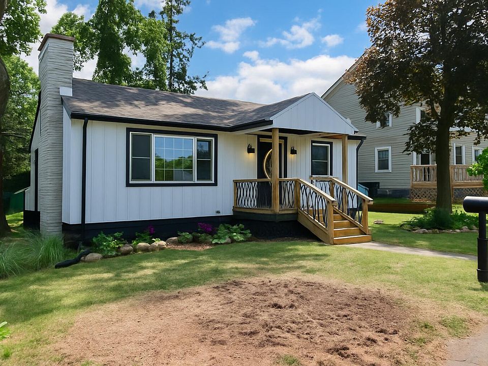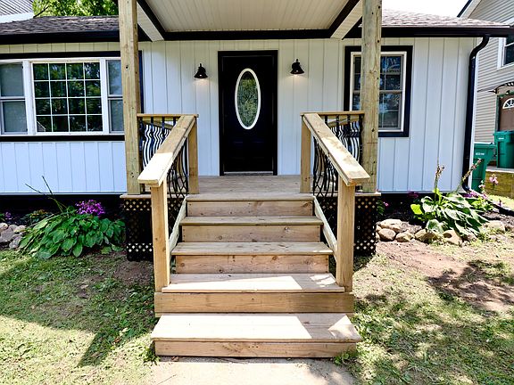 Step inside this beautifully renovated 3-bedroom, 2-bath home at 1216 Pennsylvania Avenue in LaPorte! The home boasts a stunning vaulted ceiling with exposed wood beams, modern recessed lighting, and a cozy fireplace that anchors the spacious living room. The updated kitchen features stainless steel appliances, rich cabinetry, and hardwood floors that extend into the bright dining area with French doors leading to a charming back deck. The bathrooms are newly remodeled with contemporary finishes, including a sleek walk-in shower and custom tile work. A finished basement offers additional living space or potential for a rec room or office. Enjoy fresh curb appeal with a new front porch, updated exterior siding, and ample off-street parking with a gravel driveway in the rear. Move-in ready with a perfect mix of charm and modern updates!