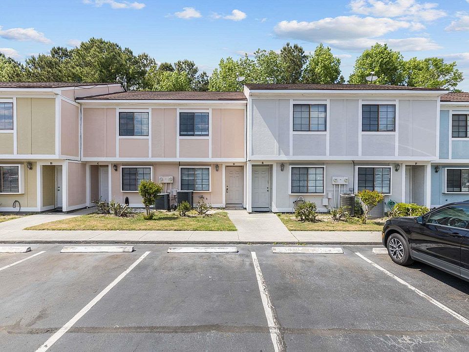 Welcome home! This townhouse within a gated community offers 2 bedrooms and 1.5 bathrooms. You will find lots of updates once you enter through the front door. Kitchen cabinets, granite countertops in the kitchen, tile flooring, bedroom carpet, new bathroom vanities, new light fixtures, all stainless steel appliances, and HVAC were all new in 2017. The living room provides plenty of space with access to your own screened in porch backing up to the woods for privacy. Upstairs you will find two bedrooms with plenty of space, a full bathroom, and laundry hookup. This community offers a pool, and very low HOA fees. Location provides easy access to restaurants, shopping, entertainment, airport, and the beach!