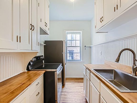 Step inside to find a cozy atmosphere enhanced by recent updates, including kitchen butcher block countertops, a new sink and faucet, and modern stainless steel appliances. So much original charm including high ceilings, original hardwood floors, and large windows that bring in tons of natural light.