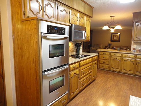 3-2-2 brick home on a corner lot; Den with a WBFP; Breakfast bar separates the den from the kitchen; Updated kitchen has Granite counter tops, tumbled marble back splash, built-in trash compactor, dishwasher, smooth electric cooktop, microwave (vent-a-hood), double ovens and coffee bar; Dining area has a bay window and pantry; Split bedrooms; In-ground vinyl, saltwater pool with cover; Concrete storm shelter; Sprinkler and security system; Patio