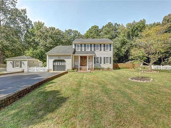 Breathtaking grounds and a parklike setting (complete with an inground pool) surround this beautifully maintained Henrico County home! You'll want to linger in the comfortable family room which features a brick fireplace with a wood burning insert. The living room/ dining area is expansive, carpeted and affords an open feel with easy flow to the kitchen. All major kitchen appliances and washer/ dryer convey! Kitchen pantry is a bonus! The half bath and entry foyer round out level one. The upper level boasts a master suite complete with a walk-in closet and full master bath with tub/shower. Two more bedrooms and another full bath complete level two. Replacement windows, a dimensional shingled roof, water filtration system, covered front porch, double width paved driveway, brick sidewalk, attached garage and storage shed are all features you'll admire. But oh the grounds! A delightful path meanders along through lush plantings creating a tranquil setting. The brick patio, privacy fencing and inviting pool add to the pleasant vibe creating that "on vacation" feeling. Located in a rural neighborhood yet offering quick commutes to downtown Richmond, VA and Williamsburg. A real gem.