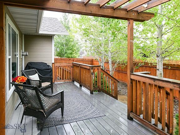 A feel good home. This 2009 single level home has a very private feel to it. The aspen trees were planted in the precise locations to shelter the home and provide summer charm. Enjoy your down time on the elevated back patio on the south side of the property. The 7464 sq. ft corner lot provides plenty of lush lawn in the front and a very private low maintenance stonescaped back yard, the results are wonderful. This adjoins a public 'secret path' to the interior park lands available to residents. With vaulted ceilings, lots of windows and 1641 sq. ft this 3 bed room 2 bath home checks a lot of boxes. Enter from the covered front porch into a foyer, then to the main living area. The kitchen is large with plenty of cabinet and counter space to host big events. There is access from the dining area to the back patio. Under ground sprinkler, air conditioning and a laundry room tucked into the mudroom are ideal for Montana living. It is dog ready with an attached two car garage setup with a dog door that leads to the fenced side and back yards. This home is well cared for and move in ready. HOA dues currently $45/quarterly.