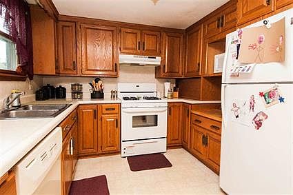 Oak Quaker Maid kitchen cabinets, many slide out drawers. Spacious living room, attached 2 car garage with fenced back yard.