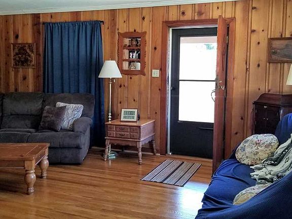 This quaint sandstone home offers 3 bedrooms, 2 full baths, a woodburning fireplace, refinished wood floors, and a specious yet cozy knotty pine living room including a large picture window. The light and airy eat-in kitchen offers ample cabinet space and windows. Two bedrooms and one full bath are on the main level. The full walk-out basement is partially finished with the third bedroom and full bath/laundry room, workshop area, and plenty of space for the hobbyist, a home gym, or strorage. Newer replacement windows, newer carpet in bedrooms and hall, remodeled bathroom, newer blown-in insulation in ceiling and walls, newer professionally installed furnace and newer water heater. Outside offers 3 parking spaces including a 20x12 covered carport. Driveway is shared. Home is offered as is.