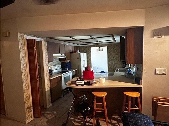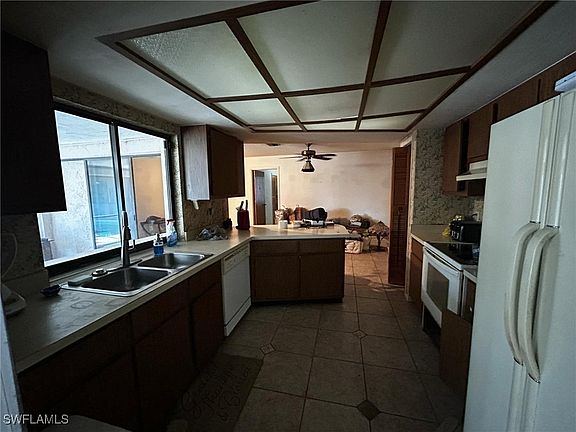 This single family home boasts 3 spacious bedrooms, perfect for accommodating a growing family or hosting guests. . Carpeting in the garage will convey for buyers use. While this home needs some tender loving care, the potential is endless. The extra large lanai with power hurricane shutters is the ideal spot for enjoying the beautiful Florida weather year-round. With a little bit of work and creativity, this home has the potential to be transformed into your own personal oasis. Lanai roof has been repaired by owner, needs drywall repaired. Pool being cleaned