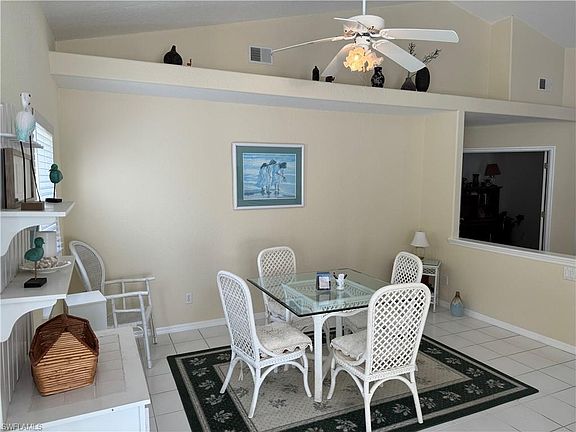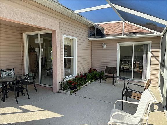 This two bedroom plus den two bath single family home is a very short walk to the club amenities. There is an extended screened lanai in the fenced back yard that has room for a pool. Two car garage and ample parking in driveway. Roof replaced 2016, AC 2023. Enjoy the resort style amenities that are included with your purchase. which include a resort pool and spa, fitness room and lockers, sauna, restaurant and bar, a cabana bar by the pool for lunch and cold beverages, pickle ball and bocci, a kids play area and sidewalks and lighted streets. All the amenities are included with your purchase with the exception of the tennis courts which is a very affordable membership. This home is in a great location within 10 minutes to four beautiful award winning beaches, restaurants, shops, theater and the SW International airport which is only 20 minutes away. Some TLC will make this a great home.