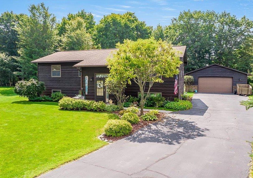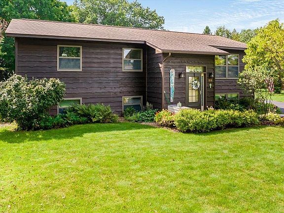 Welcome to this move-in ready 4bd/2ba home located on a 1/2-acre lot in Erickson Acres. This home features a warm inviting foyer where you can choose between the upper level or lower level. The upper level consists of the Primary bedroom with large walk-in closet, Jack and Jill bathroom, 2 additional bedrooms, living room and the kitchen which has new appliances and a dining room that opens to the awesome multi-tiered deck overlooking the beautiful backyard consisting of flowers, lilacs, pines and maple trees galore. Back inside, the lower level features, a family room with a beautiful brick gas fireplace, 4th bedroom, laundry, and 3/4 bath with sauna. Detached 28x28 garage, central air, city utilities, pathway to walking and bike trails. Close to schools, parks, shopping. restaurants and hospital. Don't miss this one! Call Today!