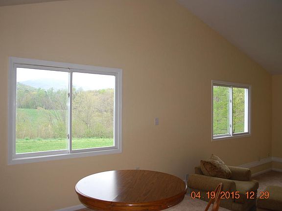 One level living with fantastic mountain and sunrise views. 10+ acres of rolling land. Home has been freshly painted and has new carpet. Large living room, dining room and eat-in kitchen. Every room has a view. Attached, glassed in sunroom (no heat and not part of square footage). Wood Furnace in Basement.