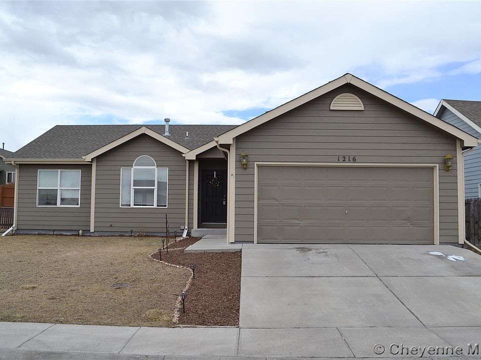 This beautiful home with new exterior paint has 3 bedrooms, 2 full baths, vaulted ceilings and an attached 2 car garage. Large master bedroom complete with a full bath and walk-in closet. Main floor laundry - washer and dryer included! Full unfinished basement for storage or future expansion needs. Walking distance to schools and located in the desirable Harmony Meadows neighborhood. Fully fence backyard.