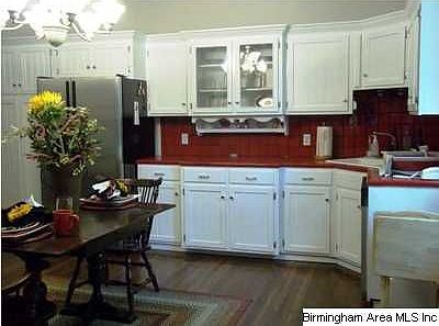 Don't Miss this one of a kind 100+ year old refurbished 2 story Farm House with your choice of 3 acres of land around house (to be surveyed off), and includes 4 out buildings. More acreage can be purchased for $10,000 an acre. House has been decorated to perfection. There are 8 woodburning fireplaces, and 2 have buckstoves. Kitchen is large with gas stove reproduction, tile countertops and eating area. House has been left true to period with updates thruout. Barn has cement floor and would be ideal for workshop. Home is currently on well water (preferred by owner) but can be hooked up to city water. Convenient to Interstate, Talledega Speedway, and Honda Plant. If you like privacy and one of a kind, this one's for you.