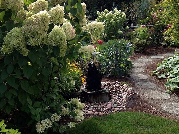 Charming & inviting indoors and out. Light & bright! Open living/dining, remodeled IKEA kitchen w/pull-outs & lazy Susan, pantry w/pull-out shelves, remodeled bath, Bose sound system, h/w floors, enclosed sun room, oversize 1-car garage. Professionally landscaped "garden oasis" w/small deck, water feature for soothing sound. Active 55+ community w/restaurant, library, billiards, swimming pool & spa, exercise room, card/craft rooms.