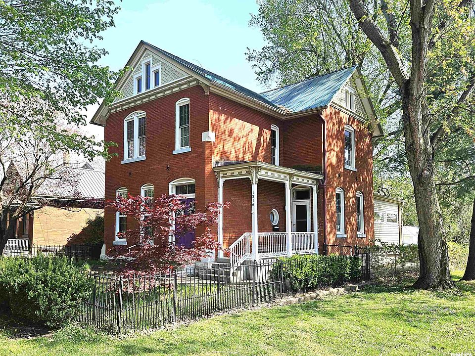 Well maintained charming historical home. Located across the street from the beautiful and historical John Wood Mansion. Replacement windows throughout. Main sewer line recently lined and updated water service lines. Exterior trim recently sealed/ painted and trees trimmed. Air Exchange System with Air Scrubber and Radon Mitigation System recently installed. Updated 200-amp electric service. Newer HE furnace and AC. Newer metal/ copper roofing. Updated kitchen with cherry cabinetry, granite counters, island with breakfast counter, and SS appliances. 2nd level laundry area with attached full bath. Floored attic storage. Finished basement with office or rec/ guest area and full bath. Enclosed front yard with ornamental wrought-iron fencing, and fenced rear yard with 2-car detached garage. Wall-mounted TV conveys.
