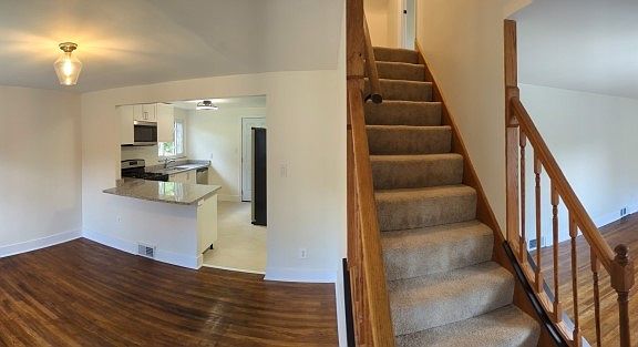 This 3 bedroom, 1 bathroom, 2024 remodeled home has it all. New electrical, new gas lines, new plumbing, new drainage, new kitchen cabinets, new appliances, new insulation, new bathroom, new tile floors, new A/C (installed 7/26), new furnace (installed 7/26), new carpet, new driveway, and fully restored hardwood floors! With one attached garage and three additional parking spaces, you can entertain guests in the large backyard with a beautiful covered porch and raised dining area. This house would make a wonderful home,. Showings are opening on 7/26, and are available by appointment before hand.