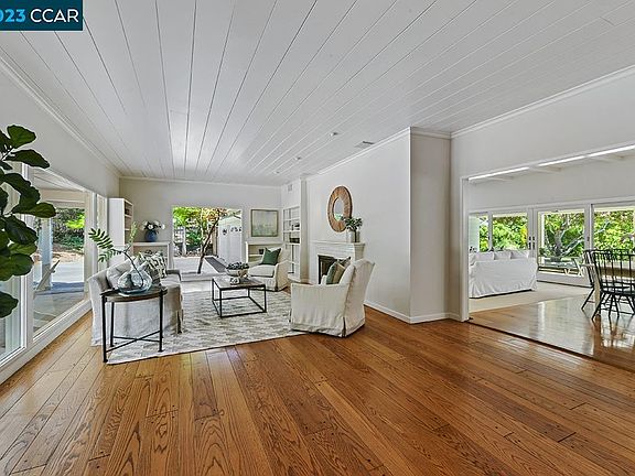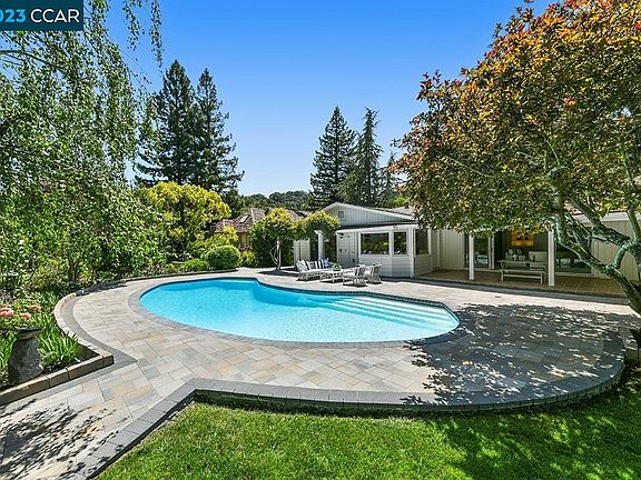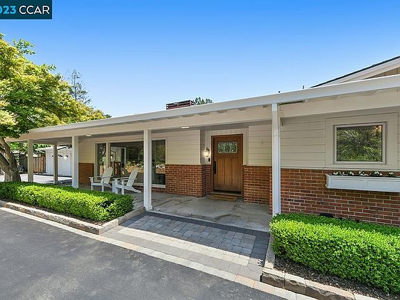 Tucked back from the road, this charming single-level home is filled with natural light and opens to a spectacular backyard oasis with sparkling pool and lush gardens. The loved home with traditional details features high ceilings, oak hardwood floors, and large picture windows. The flexible floorplan includes two spacious living areas, an updated kitchen, and spacious bedrooms. The main house is 2137± Sq. Ft. and features two spacious bedrooms with two full baths. The primary bedroom includes an en-suite bath and sliding glass door to the backyard. The adjacent guest cottage connected by the roof line is 648± Sq. Ft. with one bedroom, office space with a Murphy bed and a full bath – perfect for use as a guest suite, home office, or au-pair unit depending on your needs. The private backyard with mature gardens and pool offers a calming escape as well as a venue for summer pool parties and dining al fresco. Located in the sought-after neighborhood of Happy Valley, this home is only 20 miles from downtown San Francisco, offering the unique ability to be close to everything while retreating to privacy. Just minutes from the bustling restaurant district of Downtown Lafayette, the property is also conveniently located near the Lafayette Reservoir, Oakwood Athletic Club, Orinda, etc.