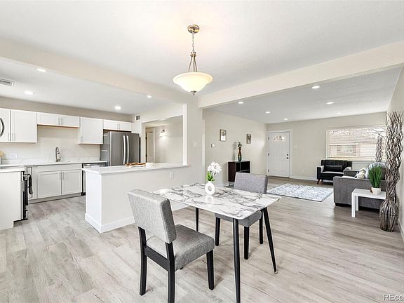 You will not want to miss your opportunity to own this beautifully remodeled three bedroom, two bathroom ranch style home! This home offers an unmatched location! Walk in and be greeted by the spacious living room that opens to the dining room and kitchen, making entertaining a breeze, complete with water resistant luxury vinyl flooring for ease of cleaning. Off the dining room is the laundry/storage space that provides access to the attached garage. Through the kitchen, you can access the large, private fenced back yard complete with large patio and storage shed. Enjoy the rare convenience of a top-rated elementary school right behind your backyard—no streets to cross, just a safe and easy walk for the little ones! Your mornings just became a little less stressful. The kitchen features all stainless steel appliances, white cabinets, and matching white granite countertops. The large primary suite boasts ample natural light and 3/4 en-suite. Two additional bedrooms and one full bathroom complete the home. Just 15 minutes to the Denver Tech Center, 20 minutes to DIA, and 25 minutes to Downtown Denver your morning commute is a breeze. Easy access to I-225, E 6th Ave., & Peoria St offer additional ease of access to nearby and surrounding amenities. Call for your private showing today! The home was recently upgraded with a brand new SEWER LINE.**The preferred lender for this listing is providing a free 1-0 temporary rate buy down for qualified buyers to reduce their interest rate on this property! This concession is exclusive to this property only. Please inquire for further information.**