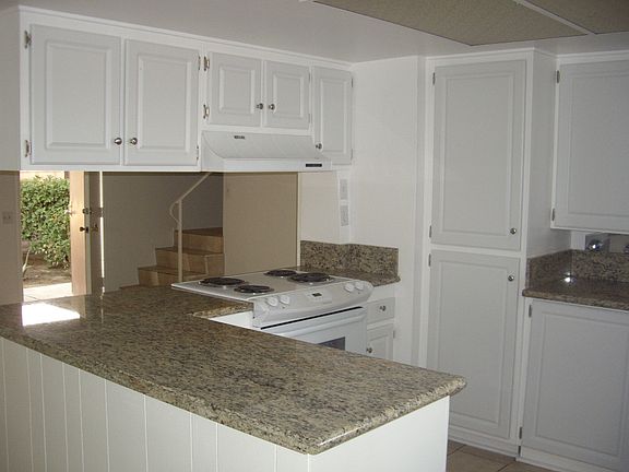 Vista Serena is a gated condominium complex with security cameras placed through-out the property and is managed by a hands on HOA and Desert Resort Property Management. As you enter the property you are met by tree-lined streets and lush landscaping. The property offers, a beautiful clubhouse with large open fireplace (for parties or meetings), pool, spa, two tennis courts, fitness room, and in case you do not have your own washer & dryer there is a newly remodeled laundry facility. The apartment has granite kitchen counter tops, range, dishwasher, new paint, blinds, washer & dryer hook-up, and a private block wall patio. Tenant is responsible for electric, water/sewer. The HOA pays for the trash and the owner pays for the HOA dues.