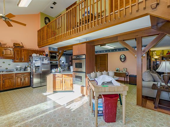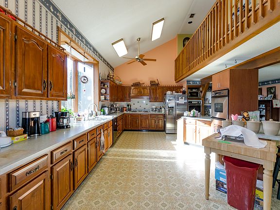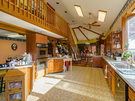 Situated on almost 3 acres, this spacious estate is brimming with potential. Features include a custom built home, 16x50 RV garage, 2-stall horse barn, fenced pasture and separate shop building - all overlooking a picturesque pond and rolling farm land. Spacious, with over 3,000 sq. feet, this custom built home offers an open floor plan with den, office and huge finished basement. Lovingly cared for and in excellent condition rest easy knowing the septic and HVAC have been recently updated. Inside, the light and bright open concept living area includes a vaulted ceiling, hardwood flooring and a brick fireplace. The dining area opens to the large deck which offers tranquil views. Delight in the large, open kitchen with abundant cabinetry and counter space, double ovens and bar seating. Enter the music room for added sitting and entertainment space plus a private office offers a quiet place to complete work assignments. The sunroom is surrounded by windows on three sides and provides more beautiful views. Retreat to the upstairs master suite complete with a hardwood flooring and a large closet The en-suite bathroom features dual sinks, jetted tub and separate shower. Two additional well-sized bedrooms share a large full bathroom. The finished lower level offers even more space with a living room and fireplace, rec room, bedroom and bathroom. Bonus features include a sauna and attached two car garage. Also included on this property is a 2,400 sq ft sizable steel shop building with HVAC, bathroom, and large built in garage. Imagine the endless possibilities this one of a kind property has to offer!