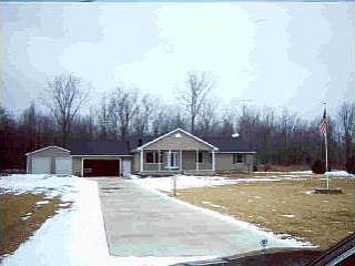 Beautiful, wooded 10 ac, above ground pool, covered deck, 30 x 60 pole barn with concrete floor, floored attic storage above garage with pull down stair.Oak kitchen cabinets w/ alloc wood floors. 1 Yr. Hm Warranty.